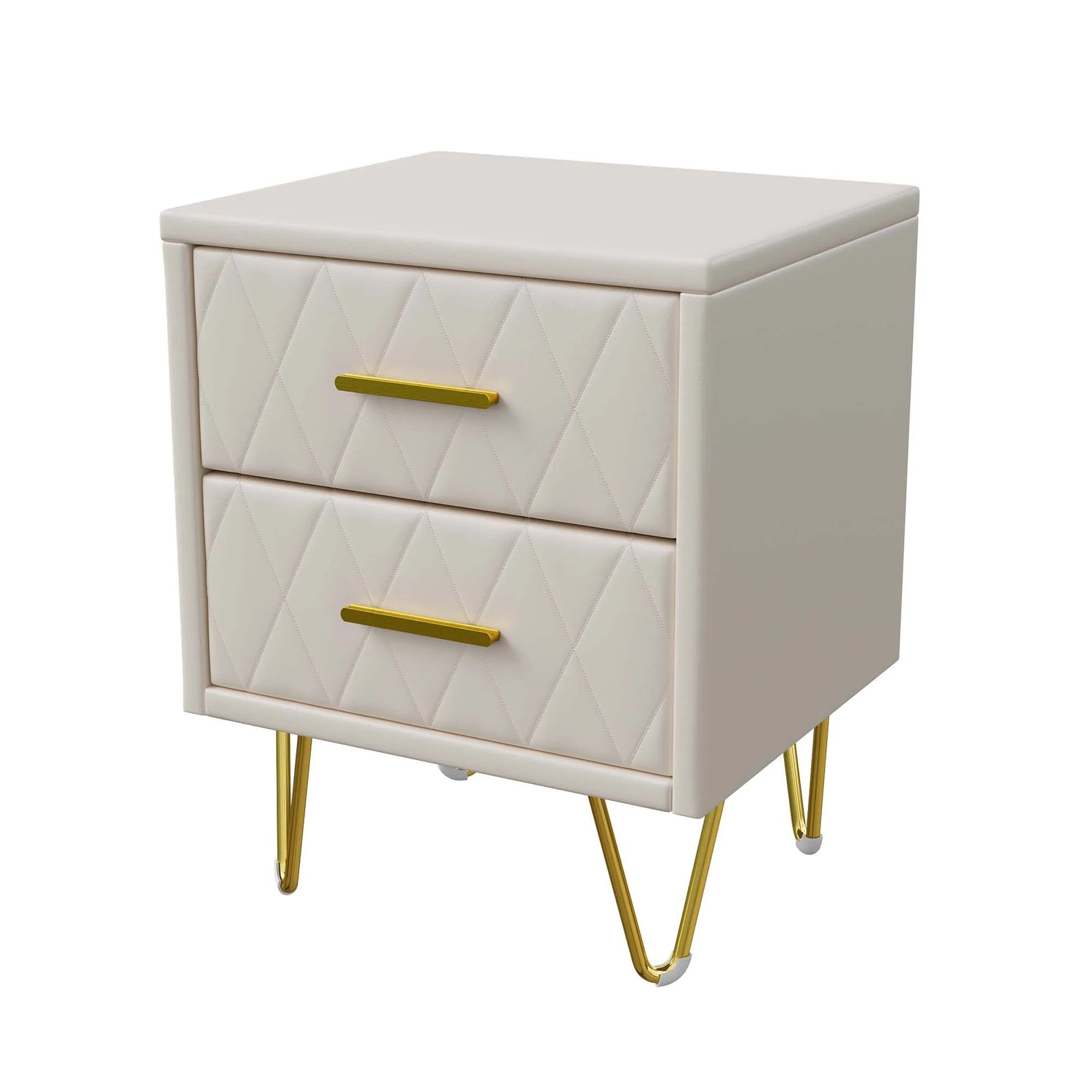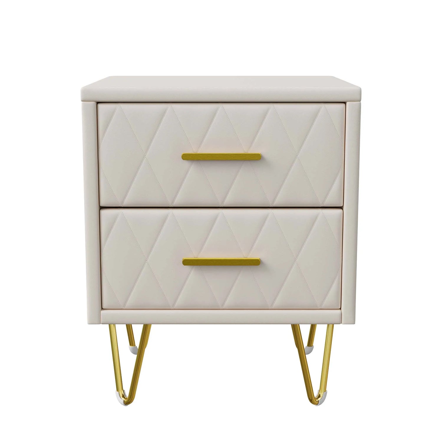 Les pieds en métal doré et les poignées assorties soulignent un design luxueux et équilibré, idéal pour les chambres modernes ou les salons élégants.