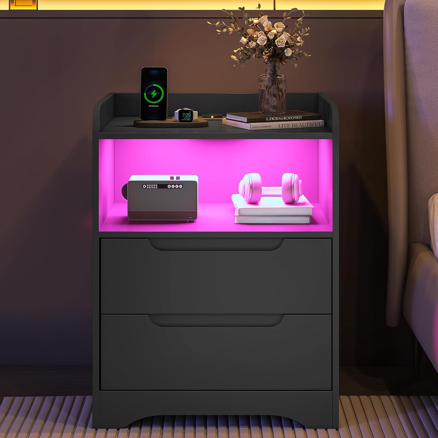 Lot De 2 Tables De Chevet LED Avec Station De Charge – 2 Tiroirs Et Ports USB | KOAÏ