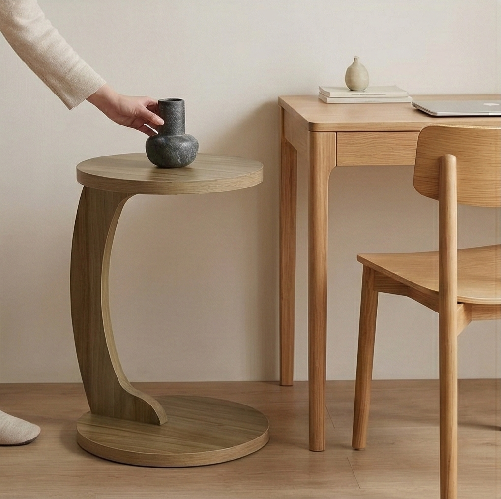 La table en C est une solution efficace d'économie d'espace et de polyvalence. Elle utilise pleinement l'espace étroit et s'intègre dans n'importe quelle pièce : comme table de salon, table de chevet, ou support d'ordinateur temporaire.
