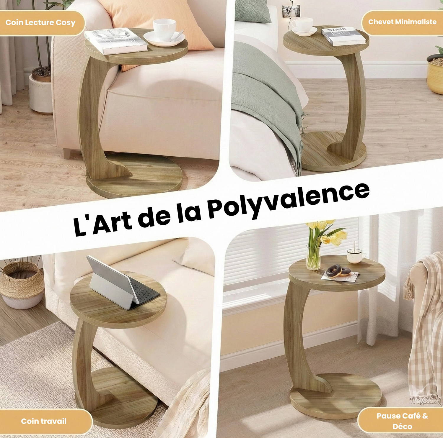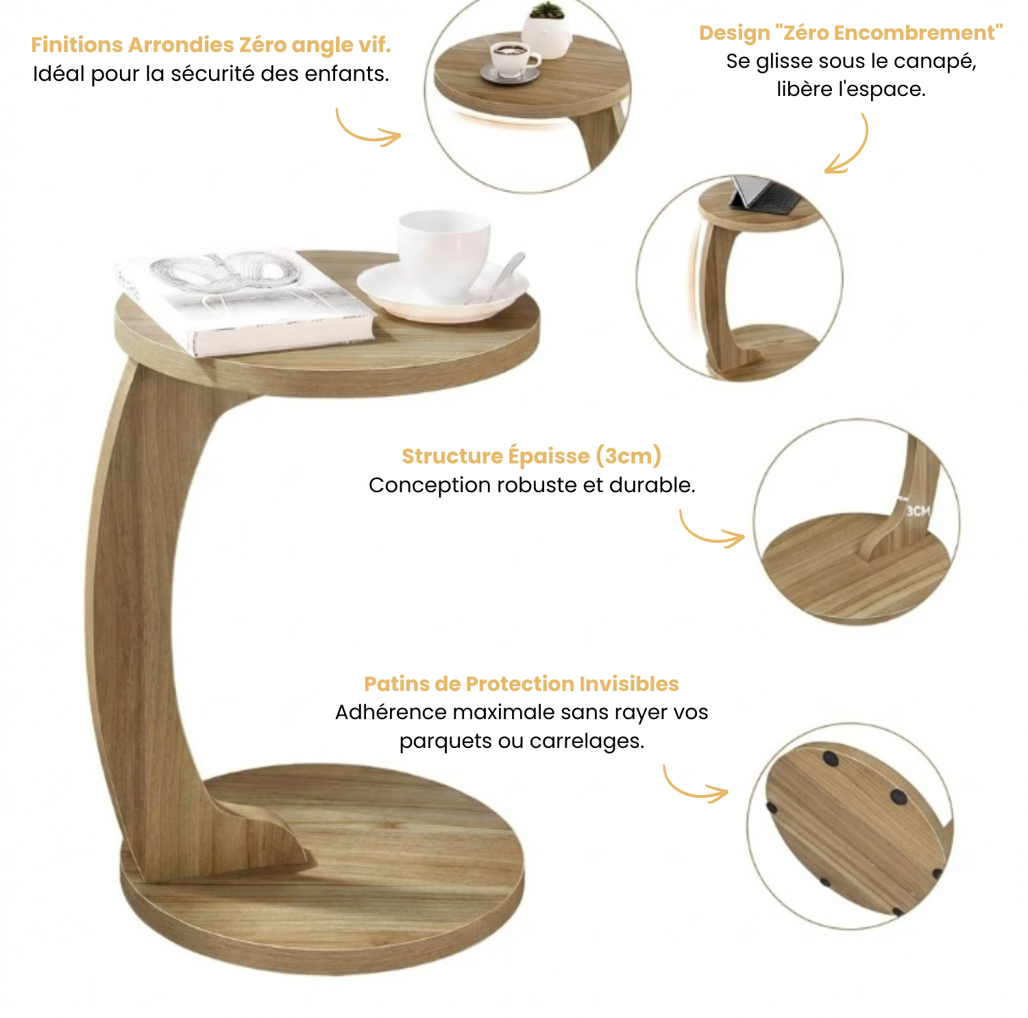 Alliant design et praticité optimisée, cette table d'appoint est conçue pour répondre à vos besoins. Sa forme en C unique lui permet de glisser élégamment sous votre canapé ou votre lit. Vous avez ainsi votre télécommande, votre tasse ou votre ordinateur à portée de main, sans avoir à vous lever.
