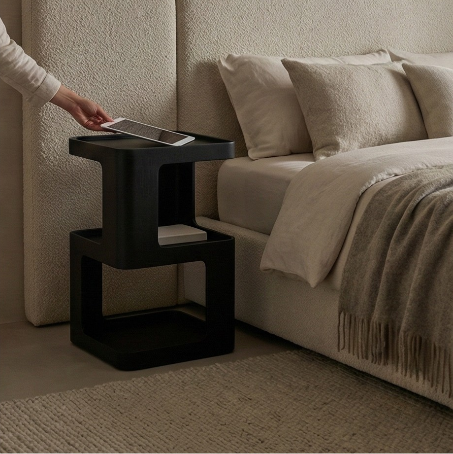 Table d’Appoint Cubique En ABS Noir – Design Minimaliste À Trois Niveaux | KOAÏ