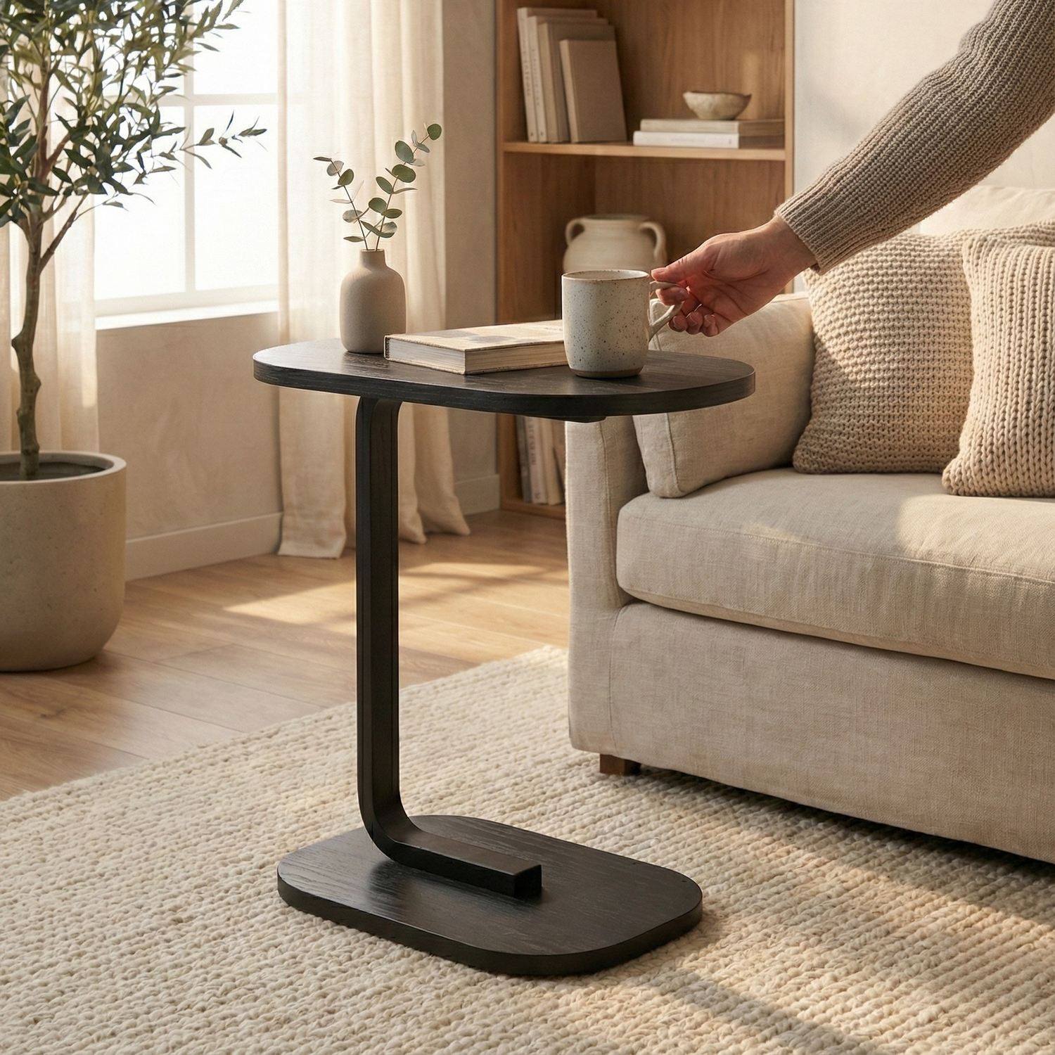 Cette Table d’Appoint en Forme de C allie finesse du design et robustesse des matériaux.