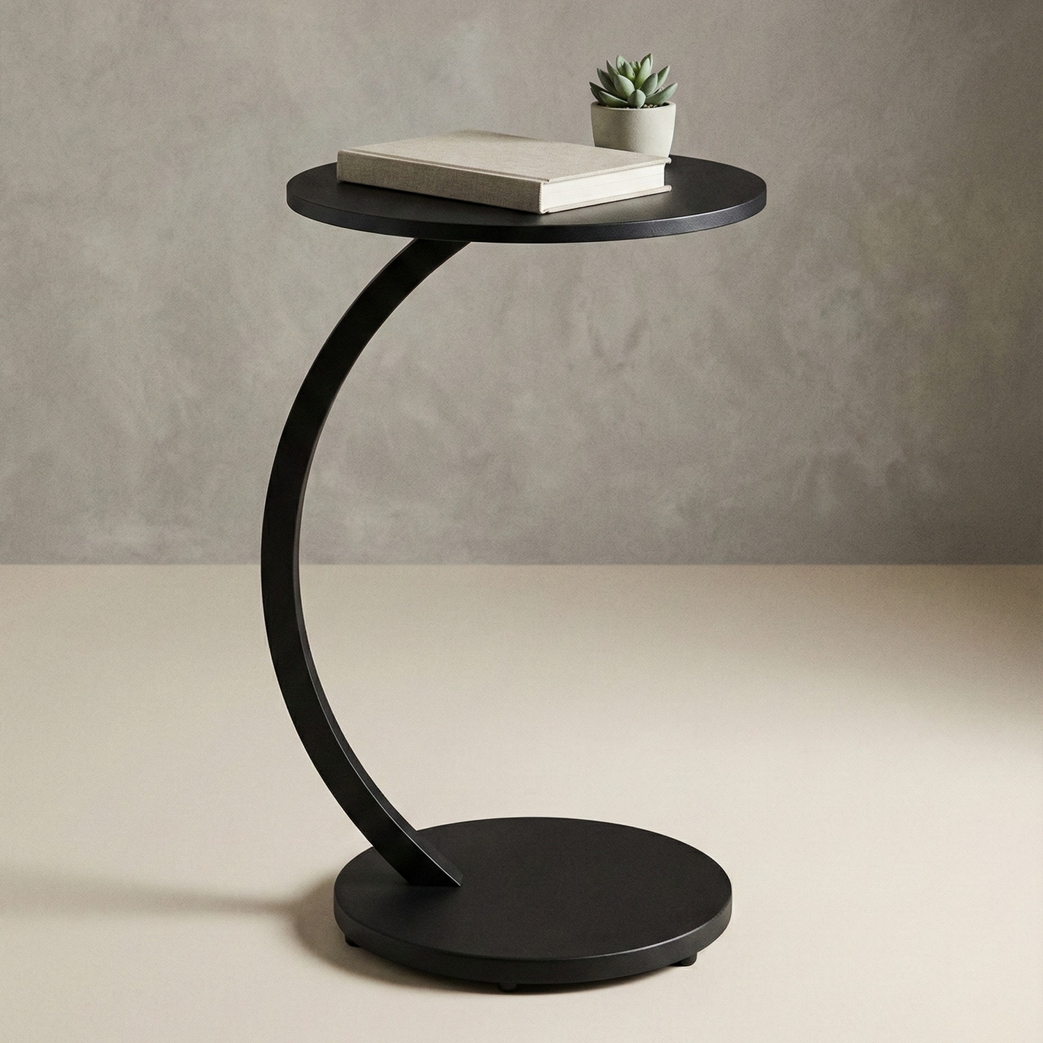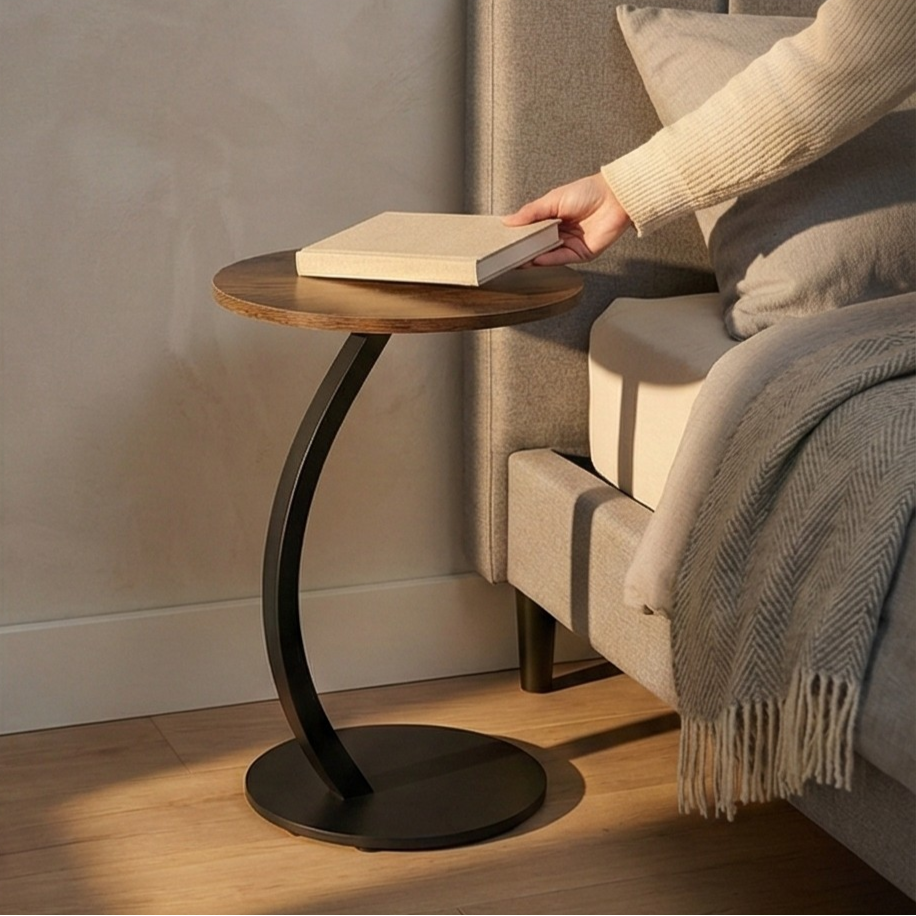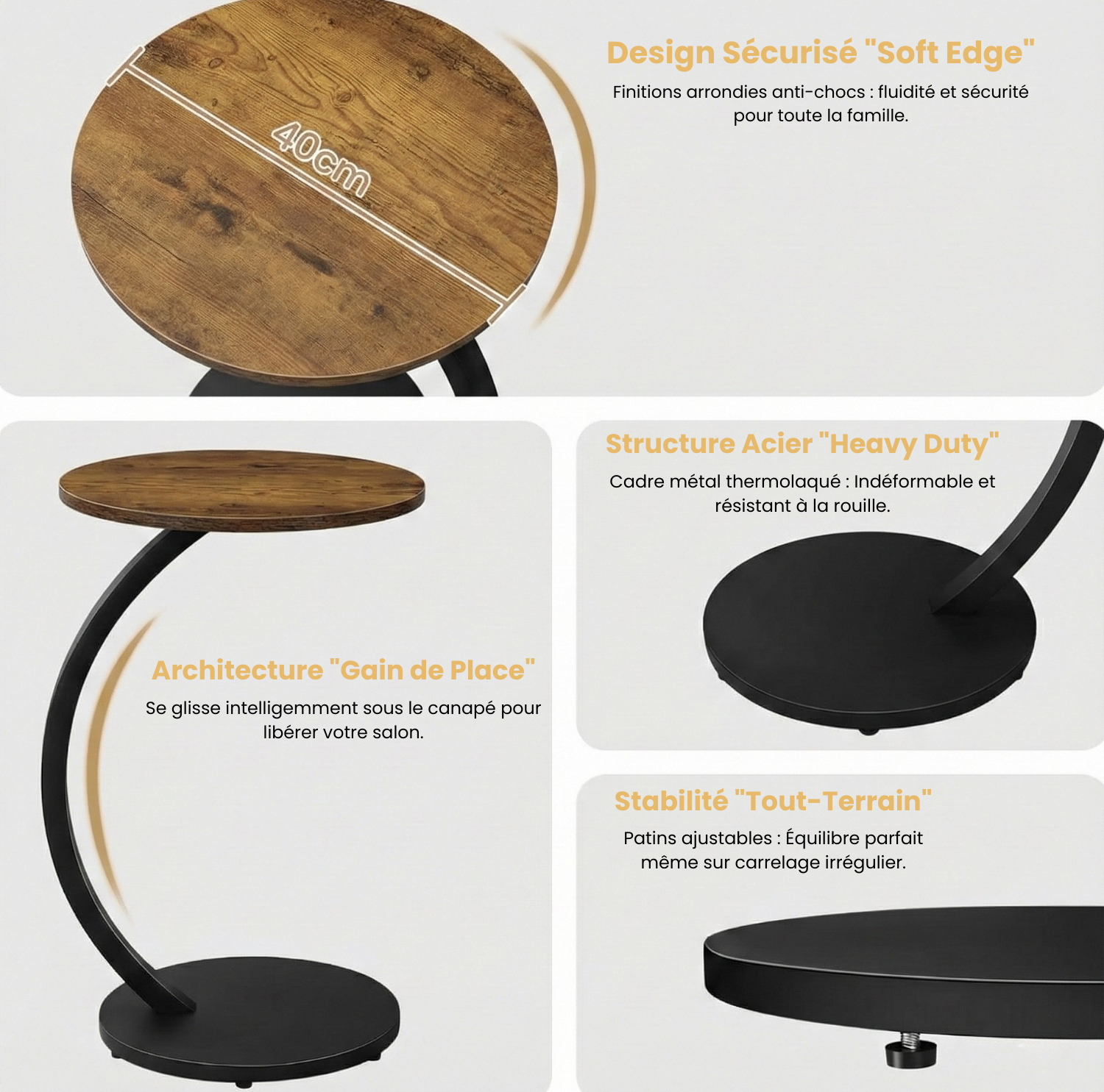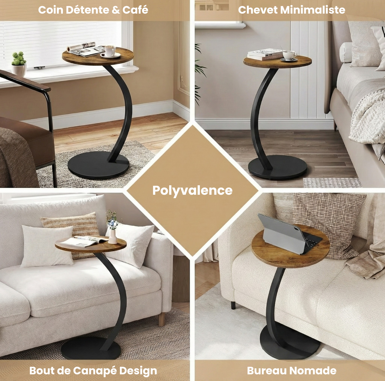 Table d'Appoint Ronde En Bois Et Métal Courbé – Design En Forme De C | KOAÏ