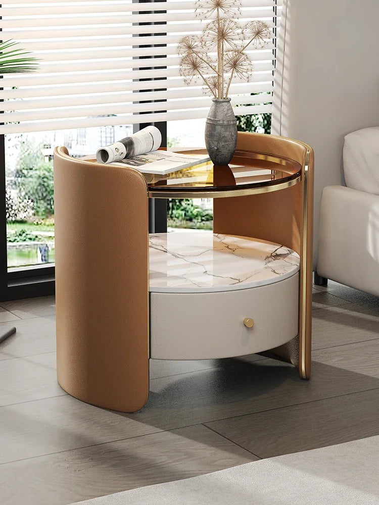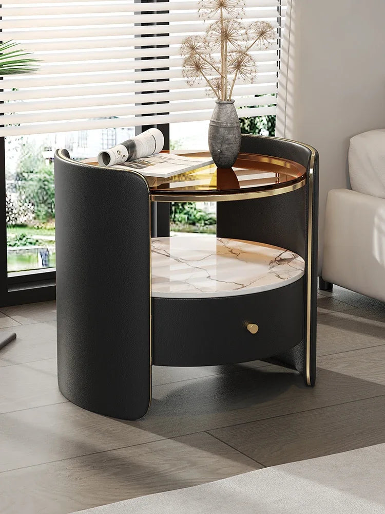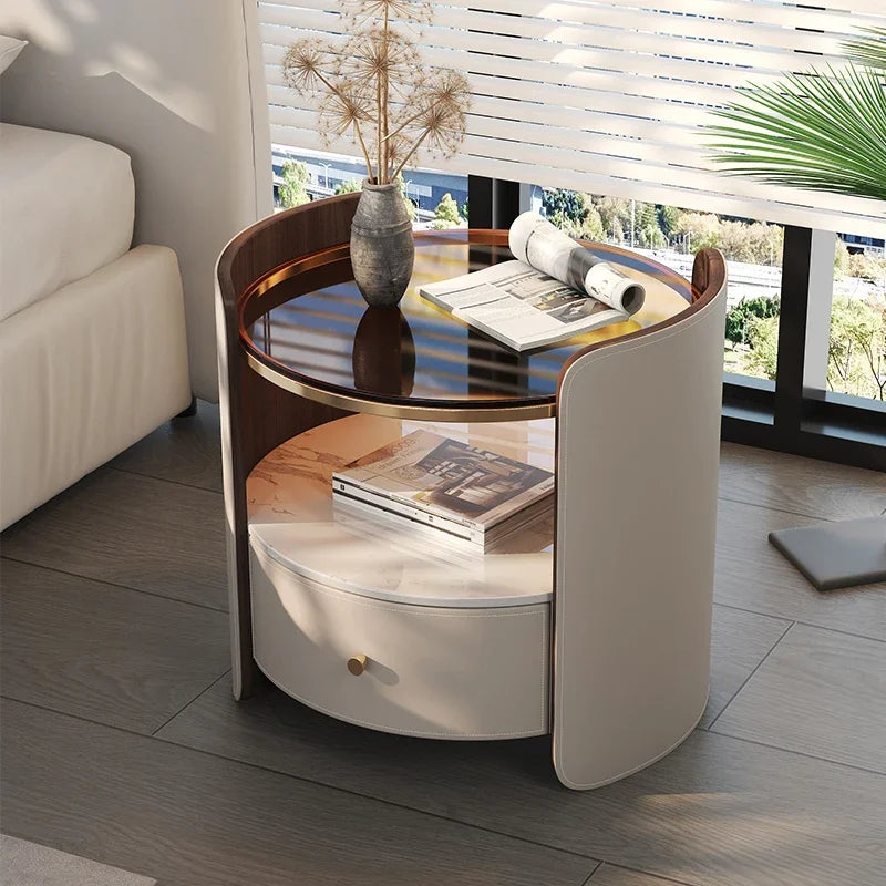 Table D’Appoint Ronde En Verre Et Cuir Nappa – Design Nordique Haut De Gamme Avec Tiroir Intégré | KOAÏ
