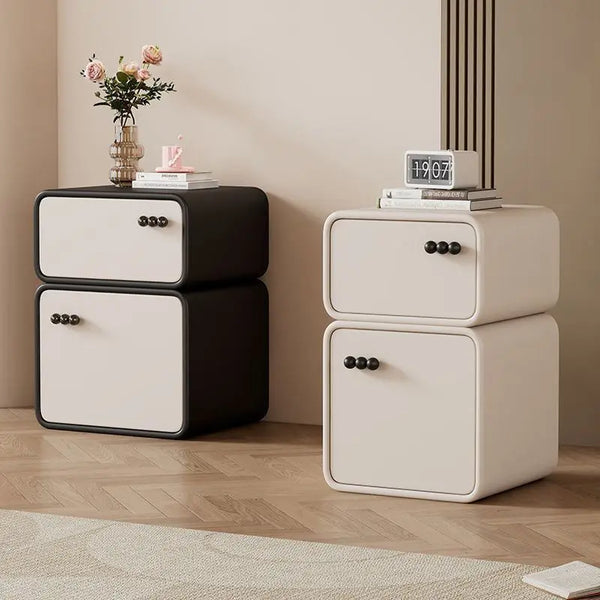 Pensée pour les intérieurs apaisants, la table de chevet 2 tiroirs – design coréen arrondi en bois massif marie douceur visuelle et solidité. Ses lignes courbes adoucissent le regard et créent une continuité élégante autour du lit, tandis que les poignées sphériques apportent une touche contemporaine discrète. Le cadre en pin massif assure une vraie stabilité au quotidien. Le revêtement en cuir microfibre, doux au toucher et facile d’entretien, résiste aux petites traces de la vie courante pour garder un aspect net plus longtemps.