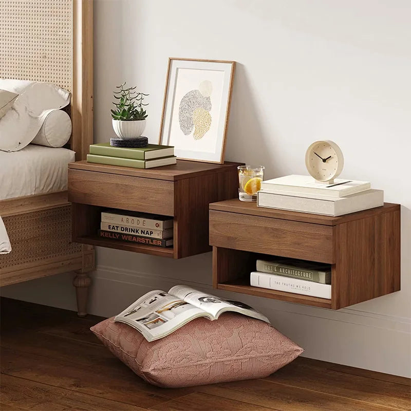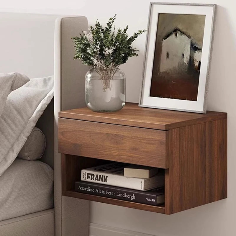 Cette table de chevet murale en bois noyer incarne l’esprit du design scandinave : minimaliste, chaleureux et fonctionnel.