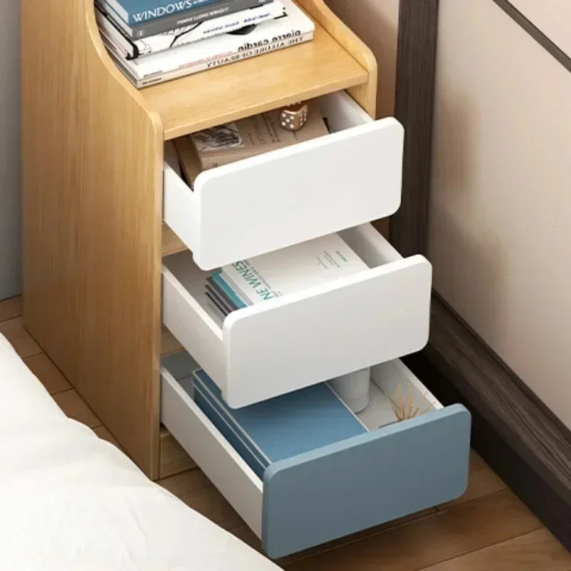 Table De Chevet Scandinave Compacte – 3 Tiroirs Design Bois Et Bleu Clair | KOAÏ