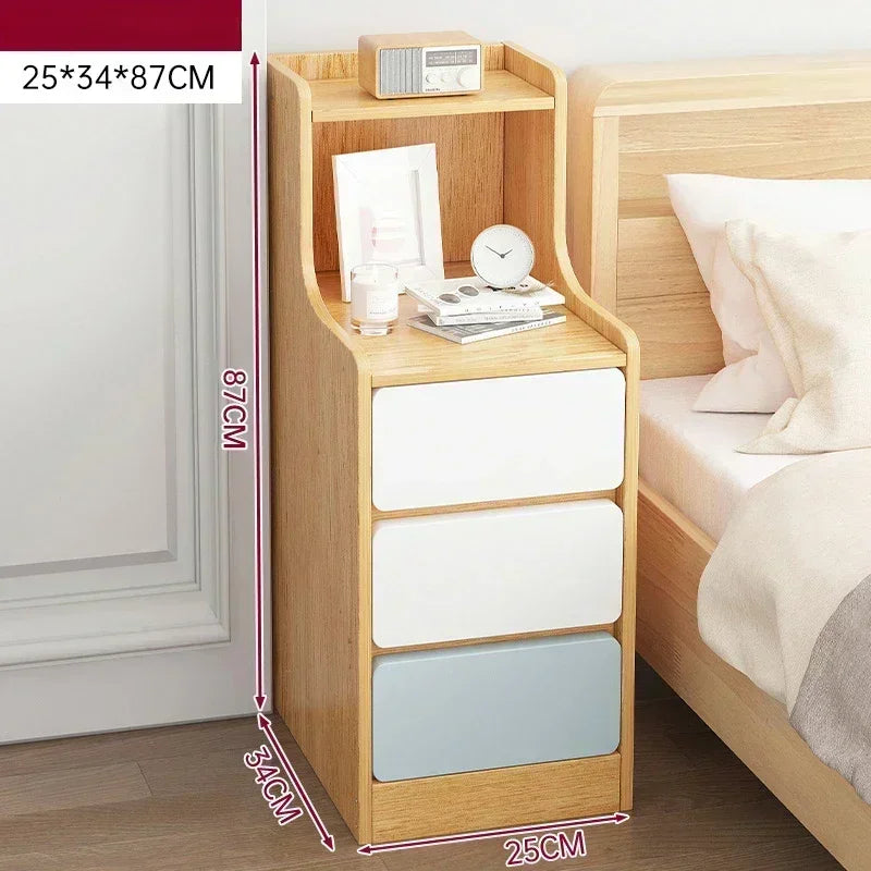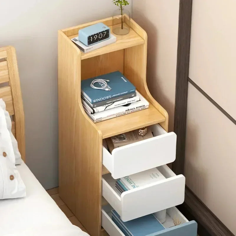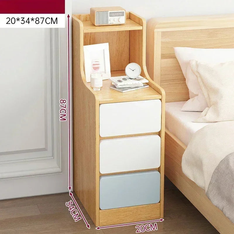 Avec seulement 20 cm de largeur, elle se glisse facilement entre un lit et un mur, tout en offrant une capacité de rangement étonnante grâce à ses 3 tiroirs et sa niche supérieure ouverte.