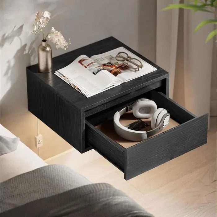 Table de Chevet Murale Noire avec Éclairage LED – Élégance Moderne & Tiroir Intégré | KOAÏ