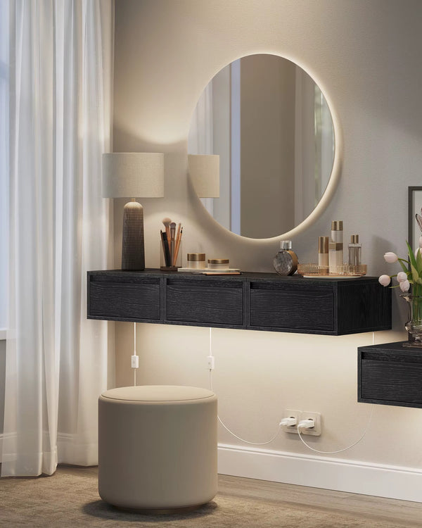 Design suspendu, lumière douce et lignes raffinées — cette table de chevet murale noire transforme votre espace nuit en un lieu à la fois pratique et apaisant. Un rangement élégant qui allie confort visuel et fonctionnalité moderne.