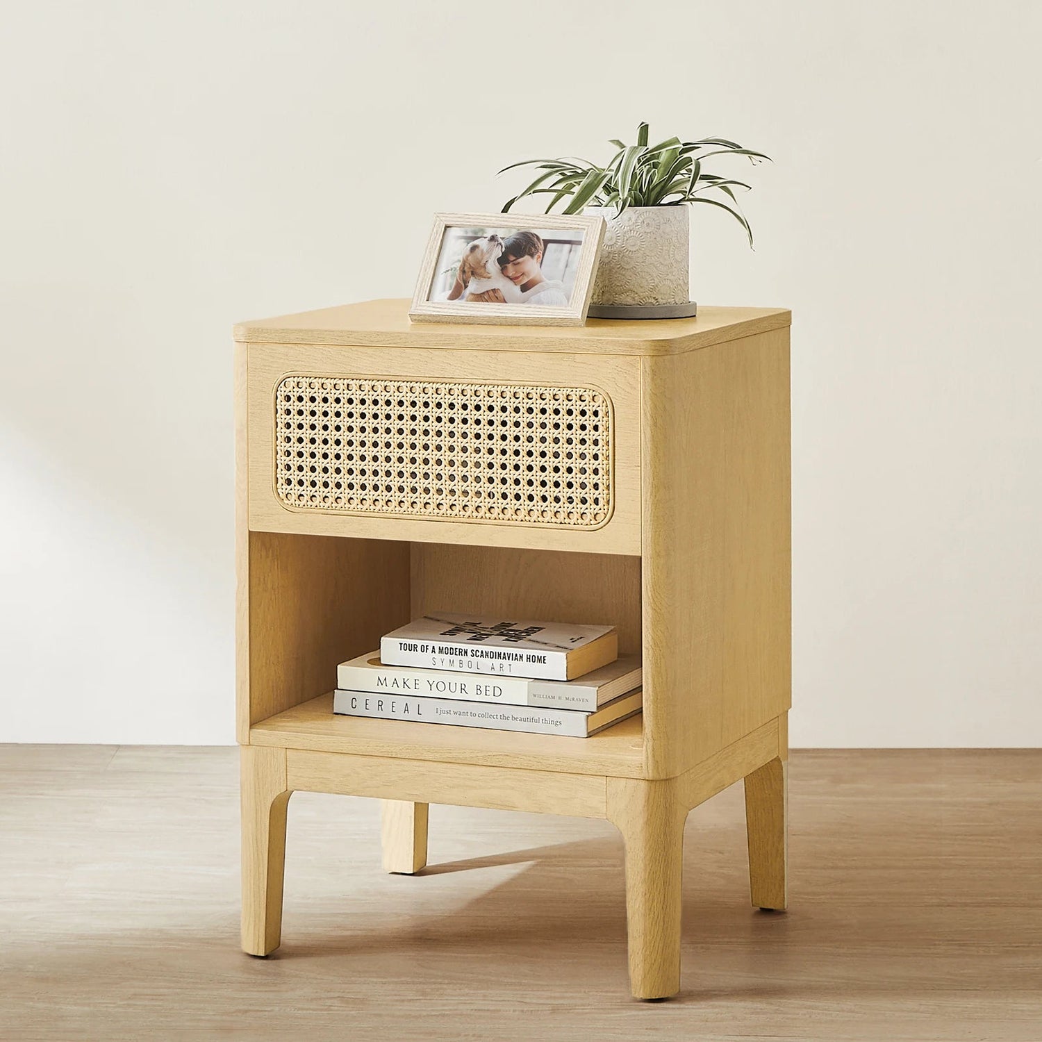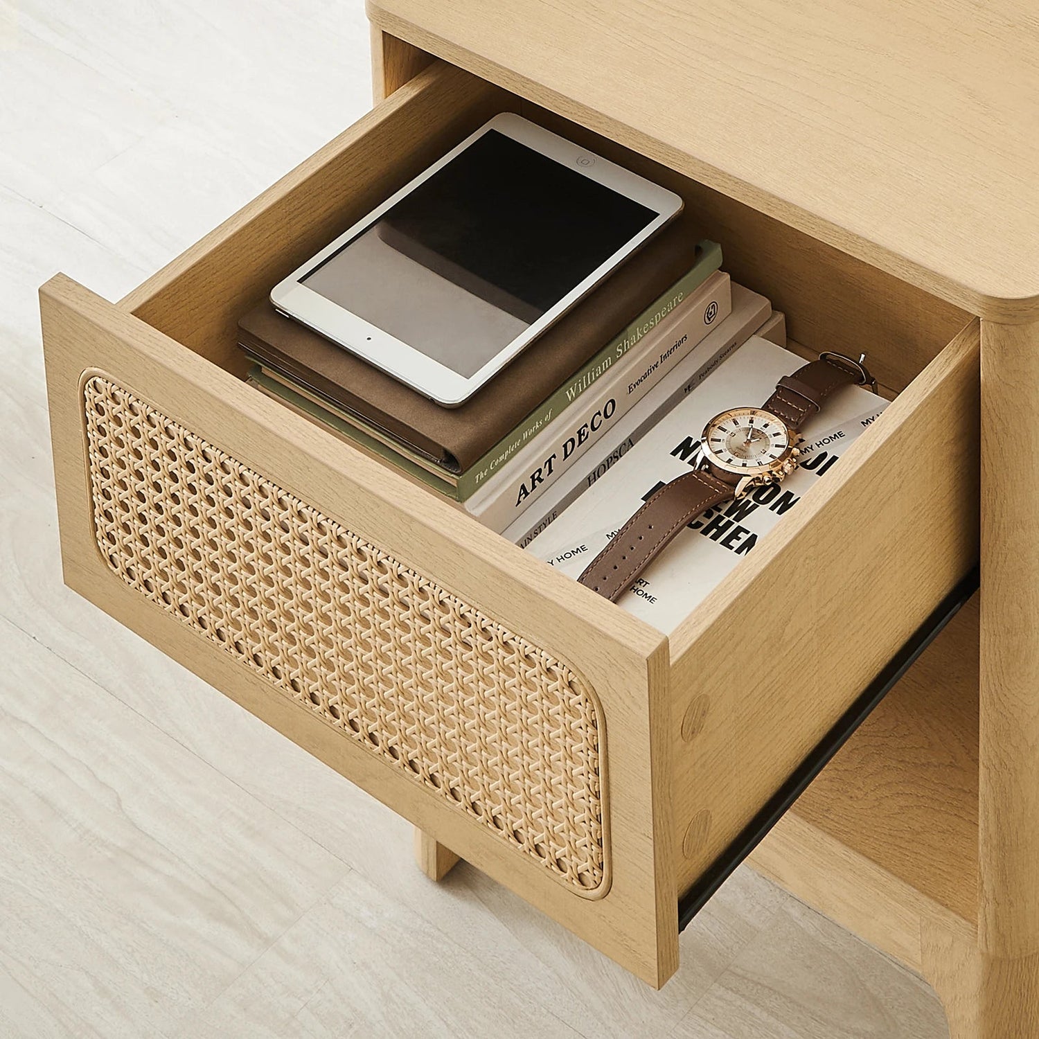 Table De Chevet Rotin Bohème – 1 Tiroir, Bois Clair Et Niche | KOAÏ